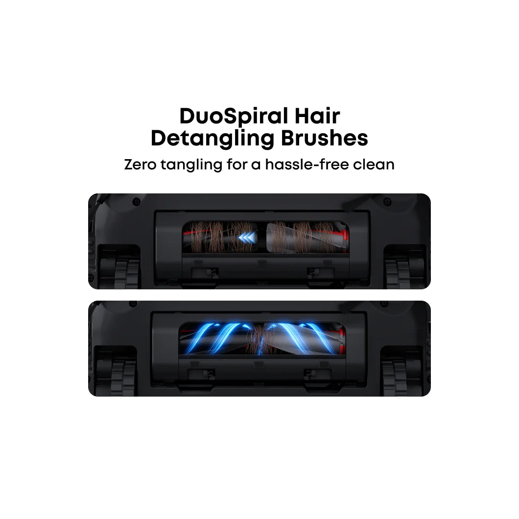 DuoSpiral™ Brushes prevent hair entanglement and reduce maintenance frequency. No mess, no stress, just a hassle-free cleaning experience.